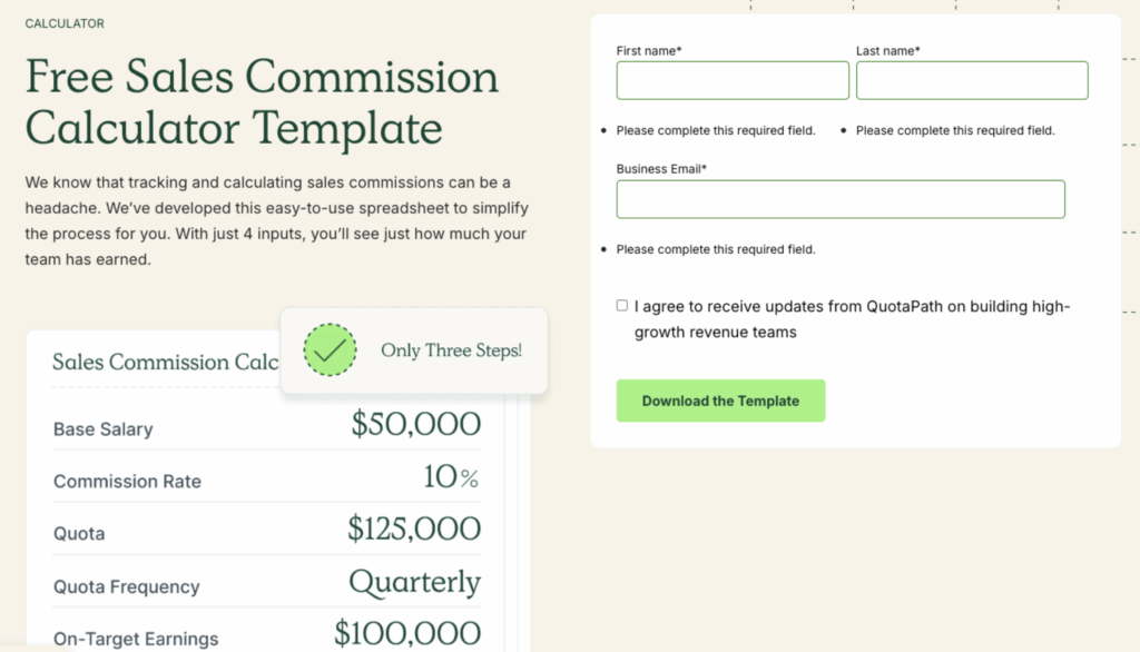 Not ready for software? Include CTA to try QuotaPath’s Excel commission template as a free starting point.